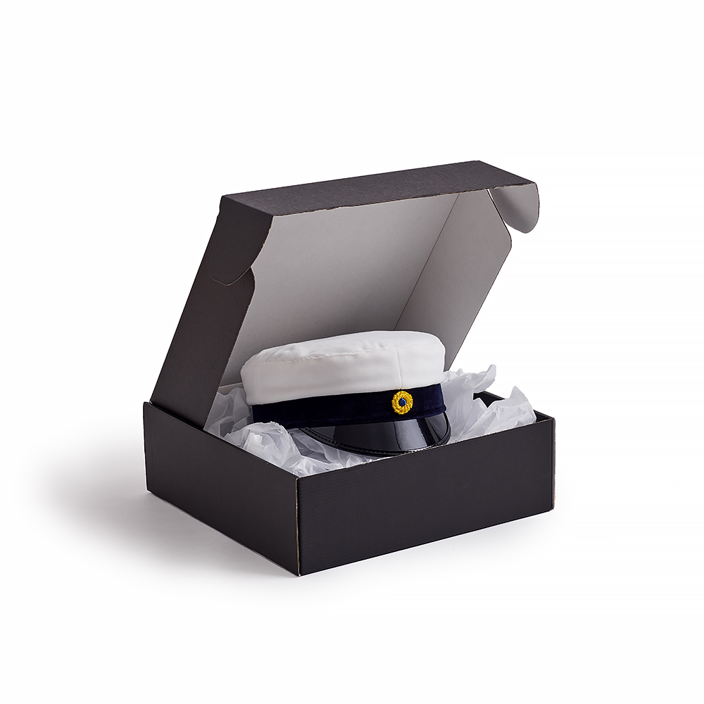 Studentmössan levereras i en svart ask. Asken ingår i priset.