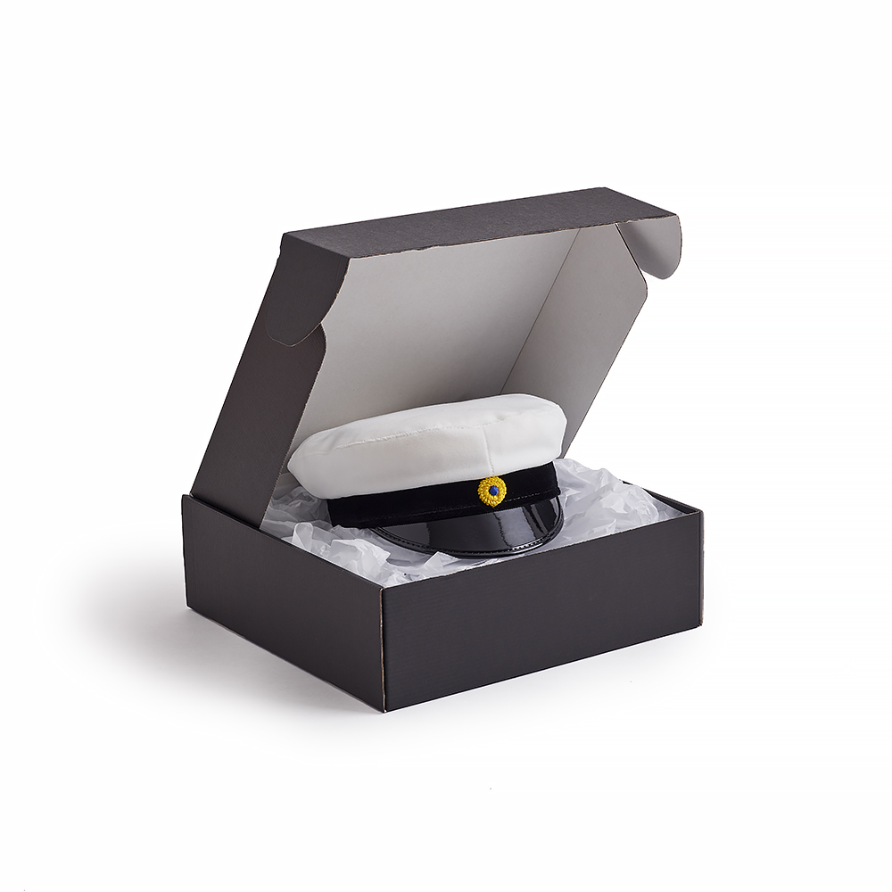 Studentmössan levereras i en svart ask. Asken ingår i priset.